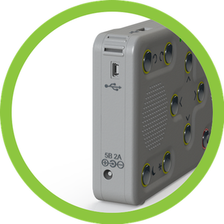 Разъем мини USB обеспечивает высокоскоростное подключение к компьютеру для работы с внешней SD картой. Тифлофлешплеер имеет специальный разъем для подключения внешнего источника питания. Блок питания входит в комплект поставки. Время полной зарядки менее 4-х часов.